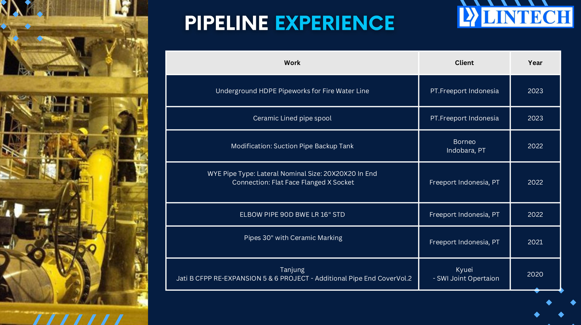 PT Lintech Duta Pratama (LINTECH) is a licensed EPCI offshore company to perform to any inquiries for quotation and
